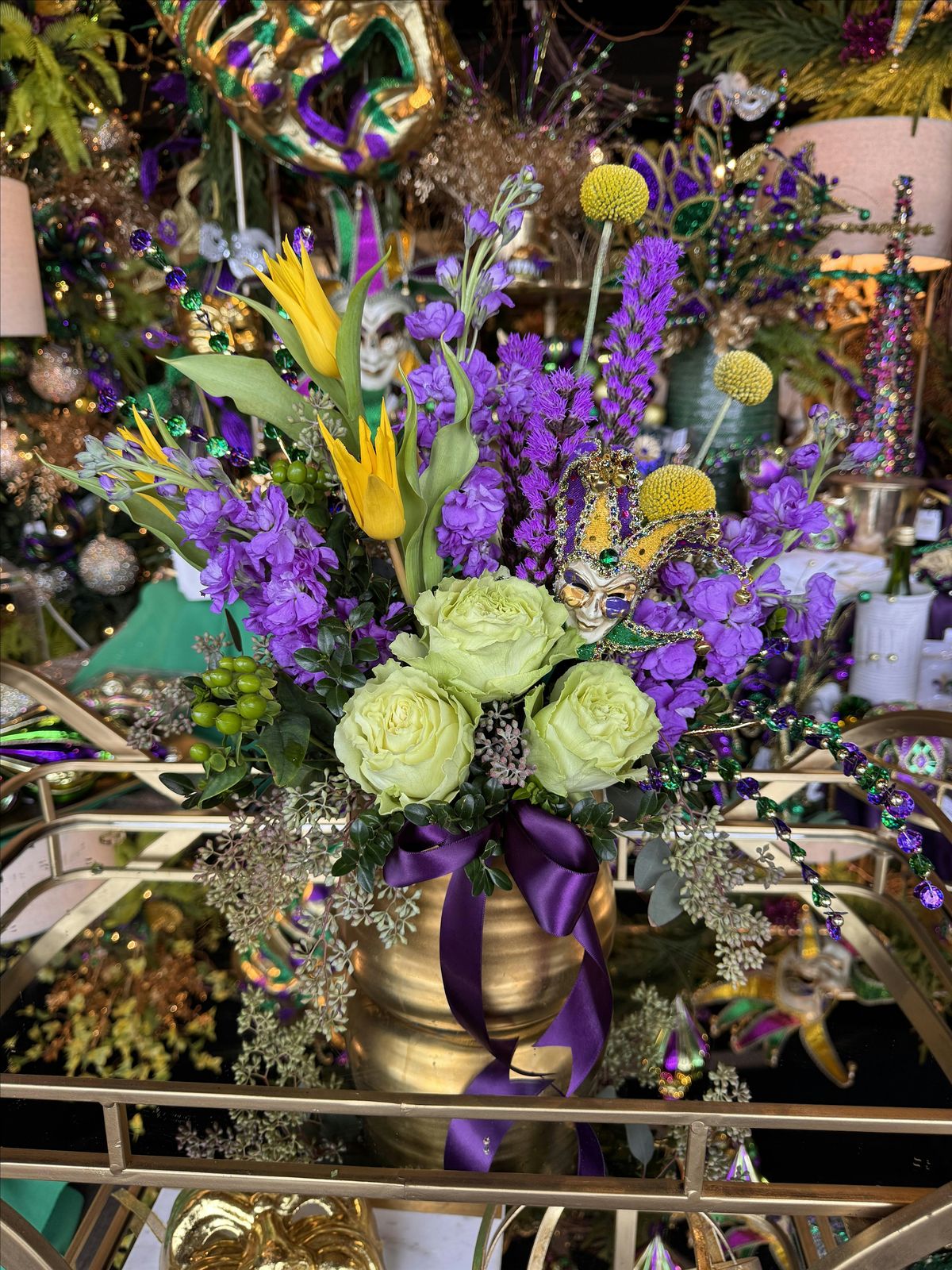 Participants will create their own Mardi Gras–inspired arrangement using our favorite season stems, accented with Mardi Gras masks and decorative picks to bring the celebration to life. We will guide you step-by-step, sharing tips on color balance, floral mechanics, and how to make your arrangement feel full, festive, and fun.