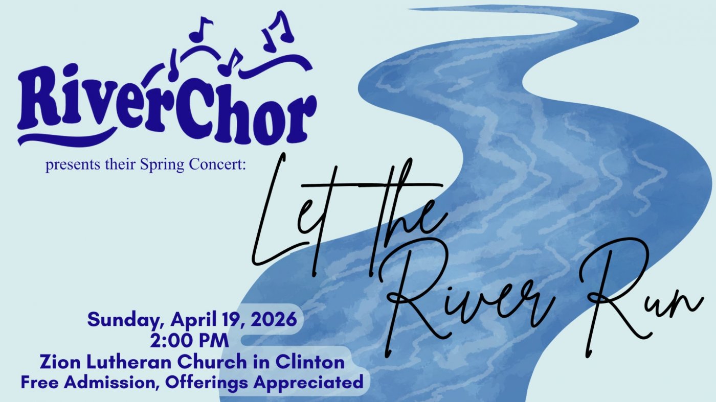 Voices will ring out in Clinton’s Zion Lutheran Church, 439 3rd Ave S, at 2:00pm on Sunday, April 19 as RiverChor presents their spring concert, “Let the River Run”. Admission is free, donations are welcome and appreciated.