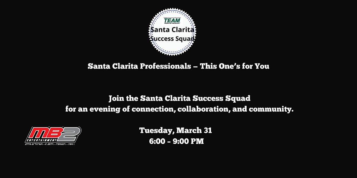 Join the SCV Success Squad for an evening of connection with local entrepreneurs and professionals in a relaxed, welcoming environment at MB2 Entertainment in Santa Clarita.