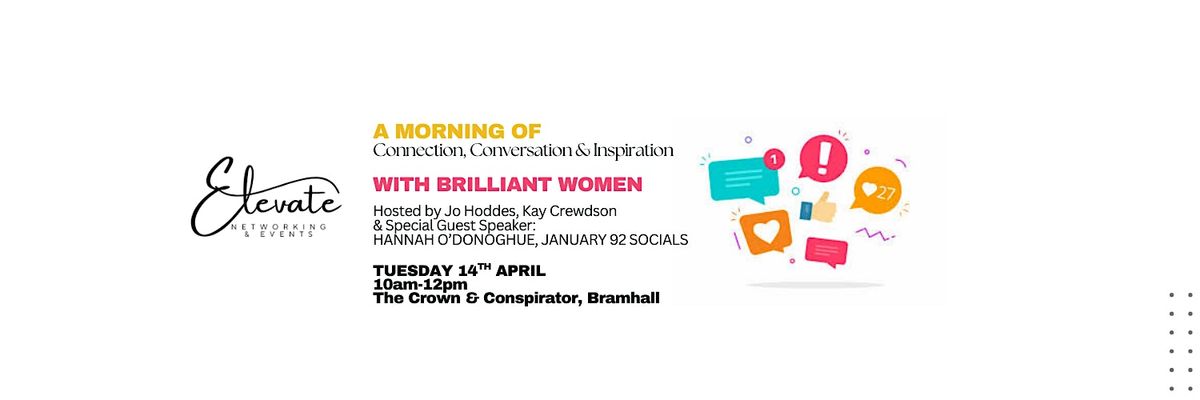 Hannah, Founder of January 92 Socials is joining us at Elevate on Tuesday 14th April. She’ll be covering how to use social media for your business in 2026, providing actionable tips that can be used whether you’re self-employed, employed, building a personal brand or just want to navigate this online world we’re all part of.