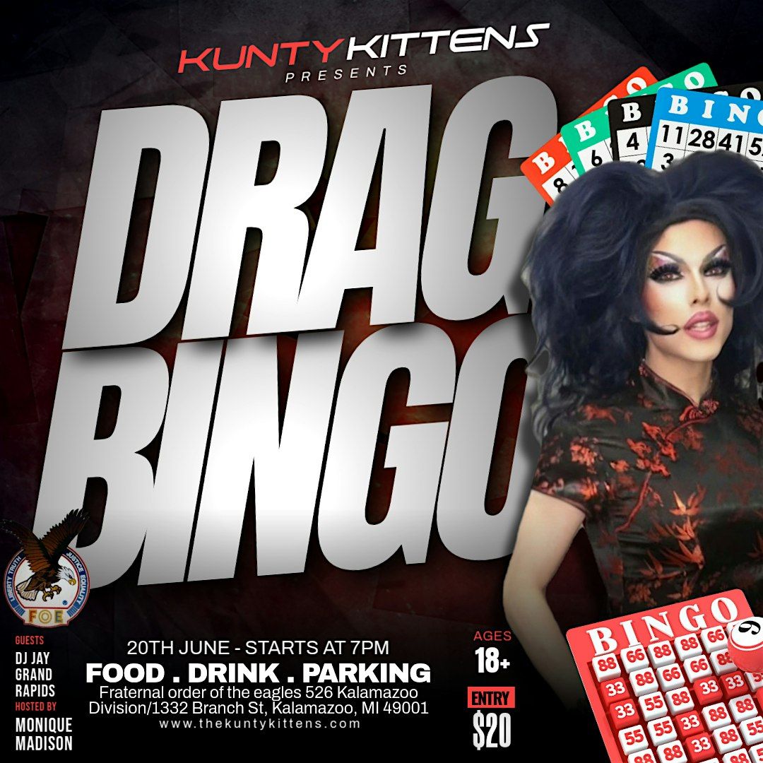 Join The Kunty Kittens Saturday, June 20th at 7:00pm for a drag show at Fraternal Order of the Eagles 526 Kalamazoo for Drag Bingo...