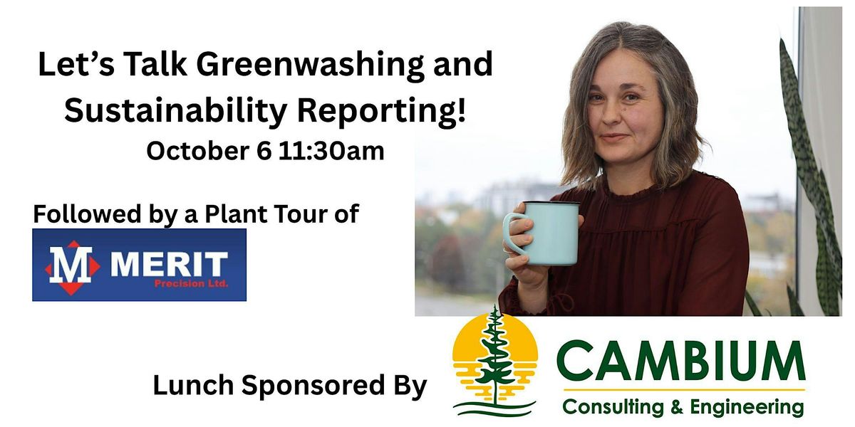 Join us on Mon October 6 2025 at 11:30 AM at Merit Precision. for an engaging discussion on greenwashing and sustainability reporting. Learn about the importance of transparency in corporate sustainability practices and how to avoid falling victim to misleading marketing tactics. Learn from an industry expert, Roslyn Miller, B.Sc., EP to gain valuable insights into the upcoming legislation of reporting requirements for manufacturers.