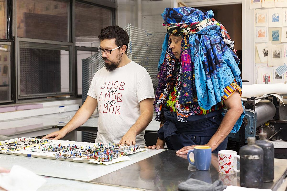 Join renowned artist and MassArt Master Print Series visiting artist Chakaia Booker in conversation Justin Sanz, Studio Director/Master Printer with the Robert Blackburn Printmaking Workshop Program. Audience Q&A to follow. During your museum visit, explore MAAM’s current exhibition