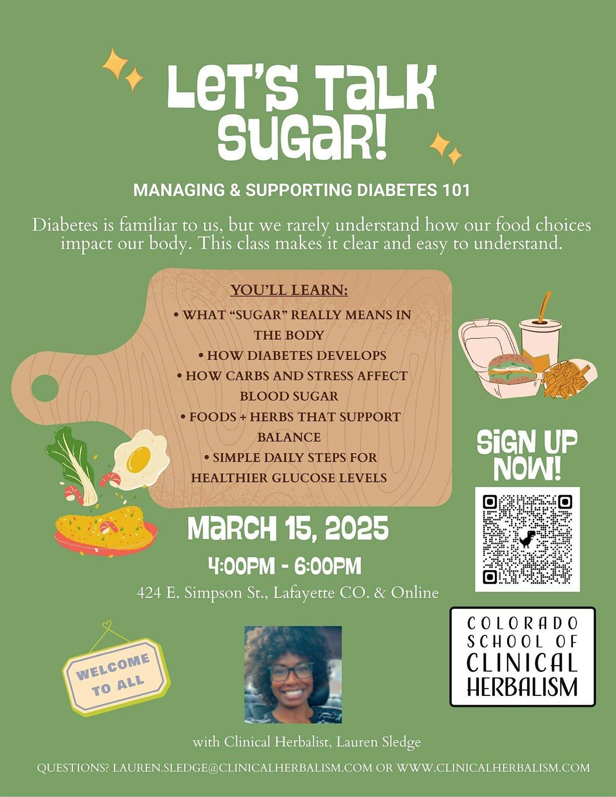 Whether you’re supporting a loved one, managing your own health, or simply curious, this class offers simple, practical tools for understanding sugar in a whole new way. Let's Talk Sugar!