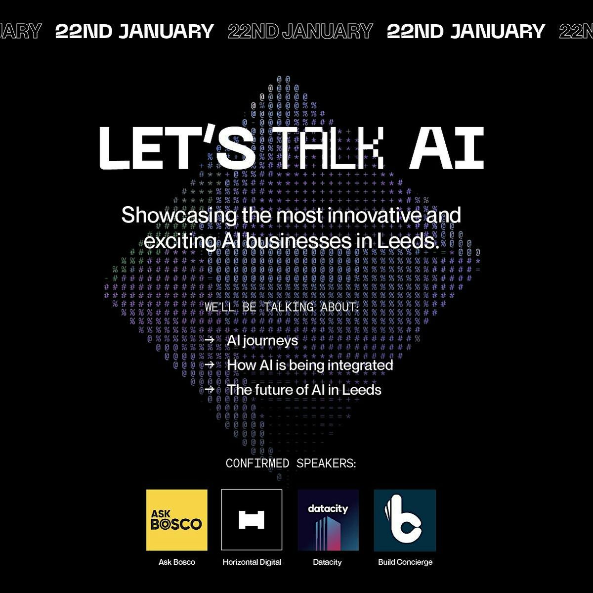 We want to showcase the AI talent that we have in Leeds. Come and listen to speakers from Data City, ASK BOSCO and Build Concierge as they walk us through their AI journey.