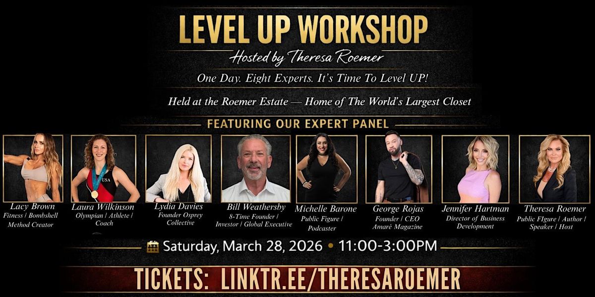 You’re invited to the Level Up WorkShop, a signature experience curated by Theresa for individuals who are ready to expand beyond where they are and step into more.