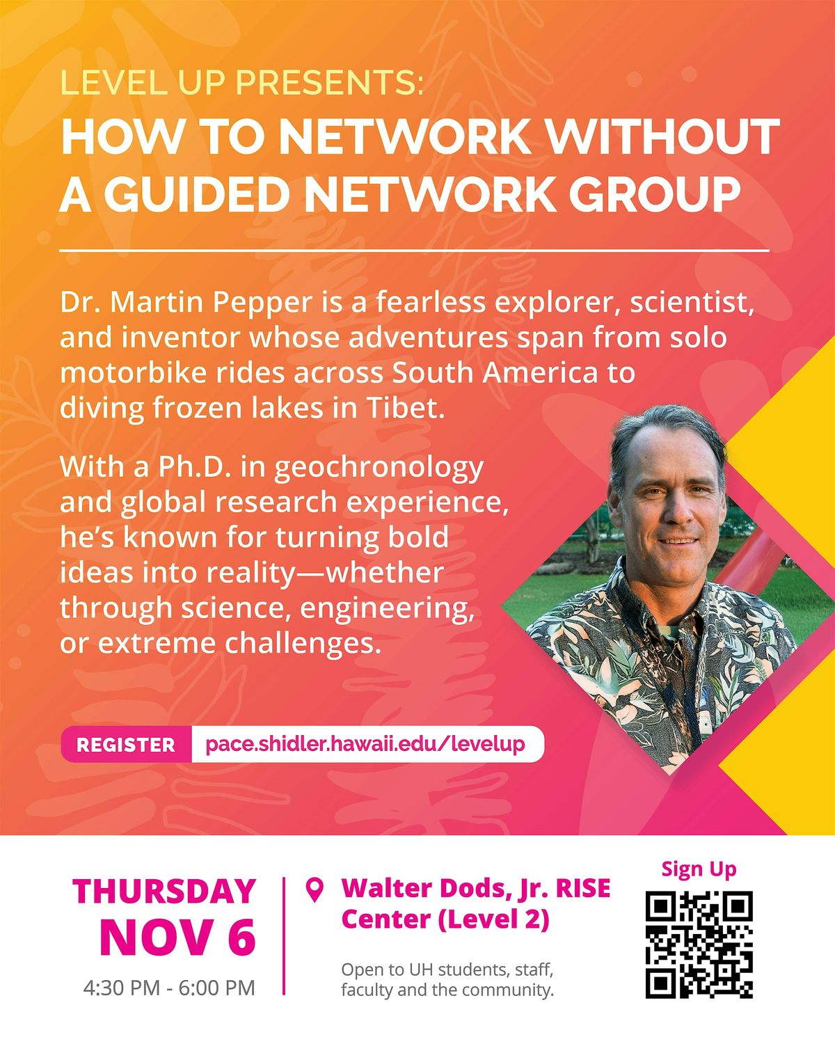 A natural storyteller and connector, Dr. Pepper will share his workshop on “How to Network Without a Guided Network Group,” offering practical ways and mentorship to build authentic connections and unlock opportunities outside traditional paths.