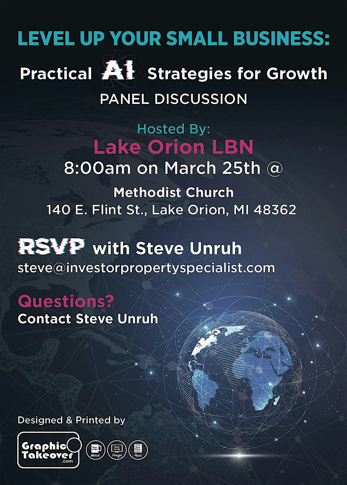 Come join us for a Q & A panel discussion on Artificial Intelligence for small business. Topics that may discussed is how AI can improve efficiency in daily tasks and securing new, and existing, customers. What ethical problems AI may be creating.