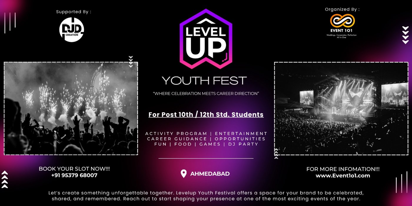 #AhmedabadEvents #AhmedabadStudents #LevelUpFest #YouthFestIndia #StudentLifeAhmedabad #10thStudents #12thStudents #GujaratEvents #AhmedabadYouth #StudyMotivation #FutureReady #StudentOpportunities #YouthPower #EventBuzz #WhatsNext #BigReveal #AhmedabadBuzz #EducationEvents #CareerGrowth #GenZIndia