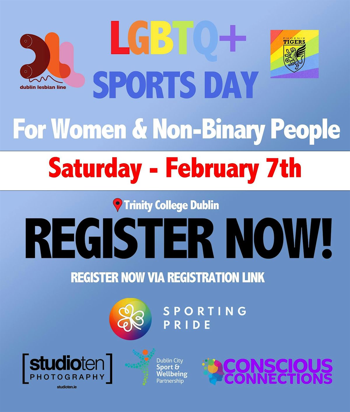 The event is organised by by Sporting Pride, Dublin Lesbian Line, Phoenix Tigers, Dublin City Sports & Wellbeing Partnership, Studio Ten Photography and Conscious Connections.