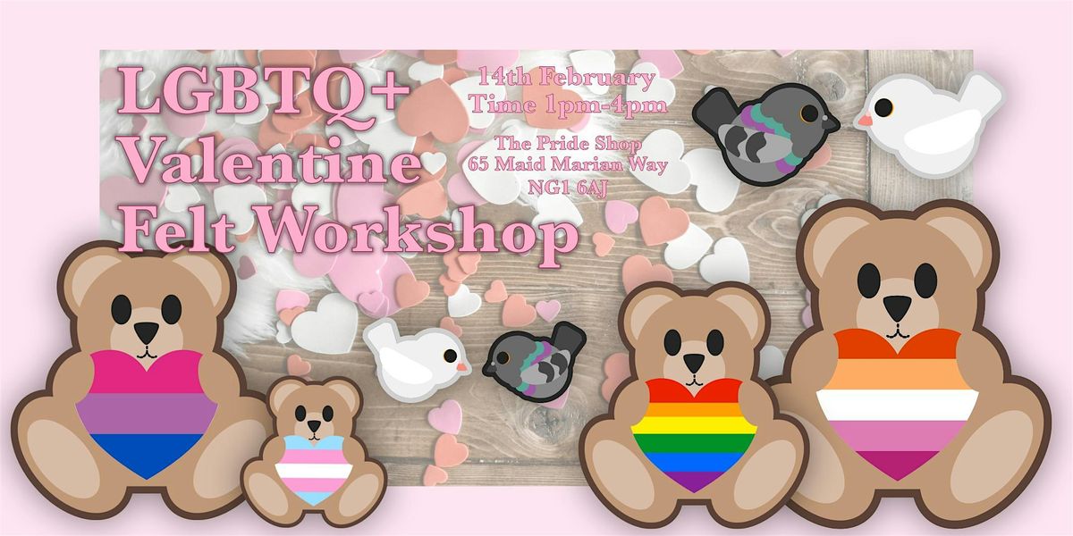 Welcome to LGBTQ+ Valentine's Crafting - Felting with George at The Pride Shop a fundraiser for the Pride Space Counselling Service.