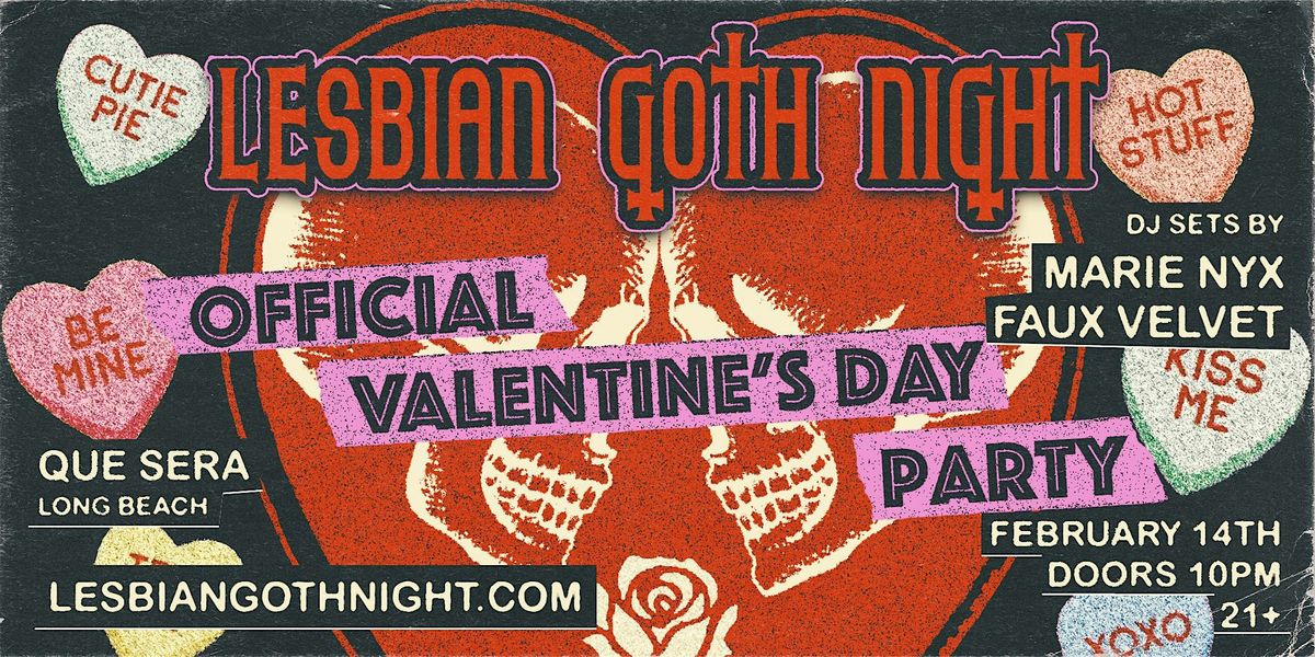 LGN is throwing our Official Valentine’s Day Party on Saturday, February 14th, 2026 at the historic gay/lesbian bar, Que Sera in Long Beach, and you’re invited to celebrate love, heartbreak, and everything in between — goth style.