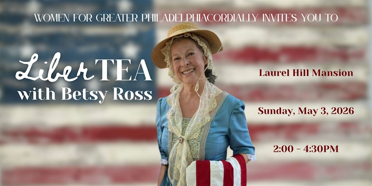 Please join us for afternoon tea at historic Laurel Hill Mansion. Our special guest this year is Betsy Ross, portrayed by Pat Jordan. Pat is a Historical Interpreter with the Heritage Theatre Guild’s Famous American Women’s Programs.