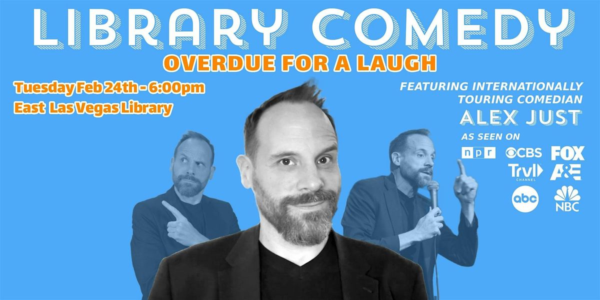 Join nationally-touring comedian Alex Just for a side-splitting show guaranteed to have you cracking up like a worn spine. From overdue jokes to well-bound punchlines, this is one event you'll want to bookmark. No shushing required—come ready to laugh out loud!