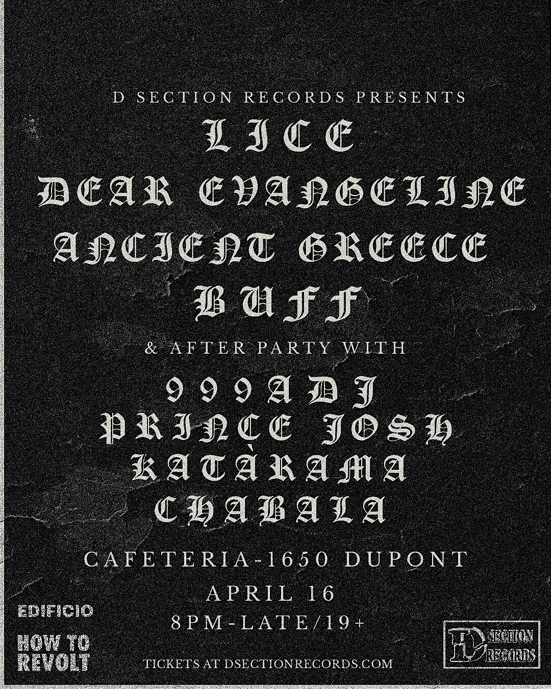 LICE/DEAR EVANGELINE/ANCIENT GREECE/BUFF...LIVE AT CAFETERIA + AP RAVE