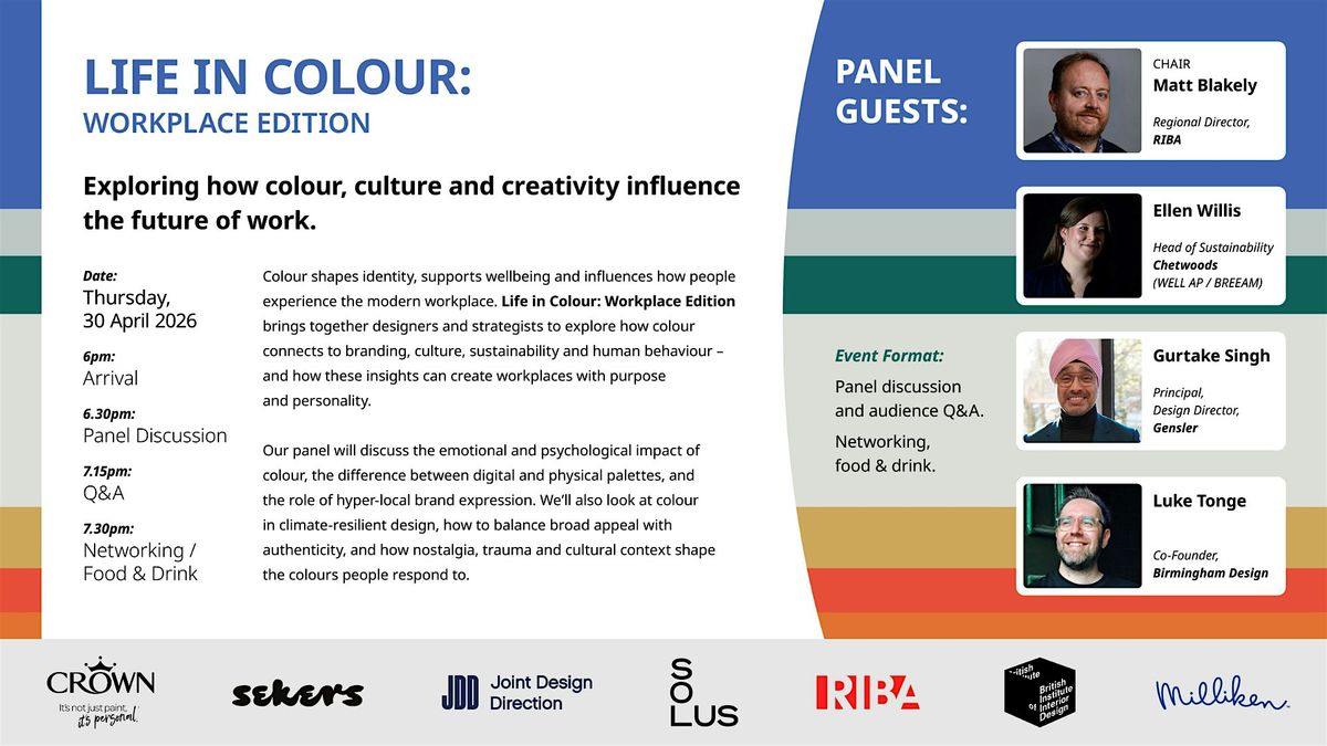 Colour has the power to shape identity, influence wellbeing and define how people experience the modern workplace. Life in Colour: Workplace Edition brings together designers, strategists and creatives to explore how colour intersects with branding, culture, sustainability and human behaviour, and how these insights can help create workplaces with purpose, personality and longevity.