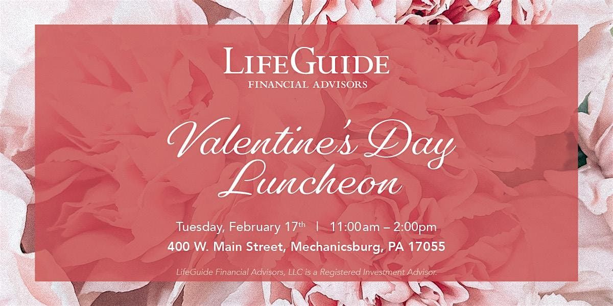 To honor our widowed and single clients, we cordially invite you to our annual Valentine's Day Luncheon on Tuesday, February 17 at our Mechanicsburg office.