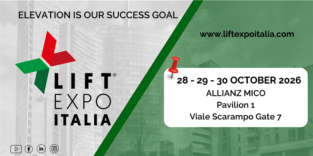 LIFT EXPO ITALIA the only certified Italian exhibition on the lift industry which will take place in the dynamic and modern city of Milan. A great event that will involve many exhibitors from all over the world who will have the opportunity to show and present their products to an equally global audience. The location will be the new and modern ALLIANZ MICO – Milan Convention Center located a few steps from City Life.