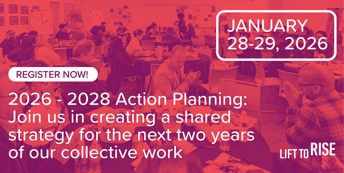 Action Planning is here! You are invited to join Lift to Rise and the 70+ cross-sector partners to co-create our shared two-year Action Plan for 2026-2028!
