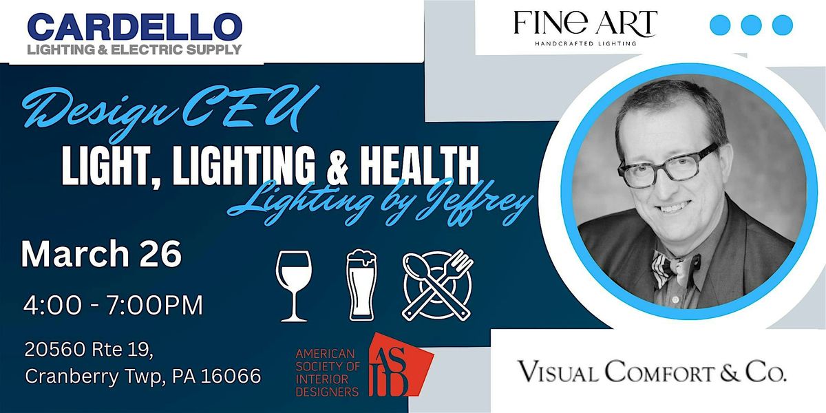 The evening will feature a CEU presentation by lighting expert Jeffrey R. Dross of Lighting by Jeffrey, focused on the powerful connection between lighting, health, and well being. Discover insights on how different types of light affect our daily lives, including mood, energy levels, and circadian rhythms. Learn how thoughtful lighting design can improve environments and support healthier, more comfortable living spaces. This engaging session offers practical ideas that designers and homeowners can use to create spaces that truly support how we live and feel. β¨