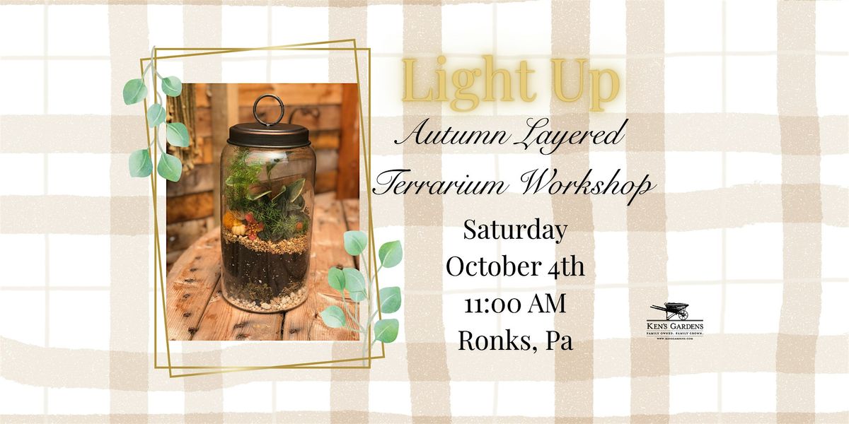In this workshop, you'll build a beautiful, enclosed ecosystem inside a 12" glass jar with a built-in light. You'll choose three miniature plants, a fall themed figurine, and a variety of decorative elements to make it uniquly yours. We'll guide you through layering techniques, design tips, and how to care for your terrarium at home to keep it thriving all season long.