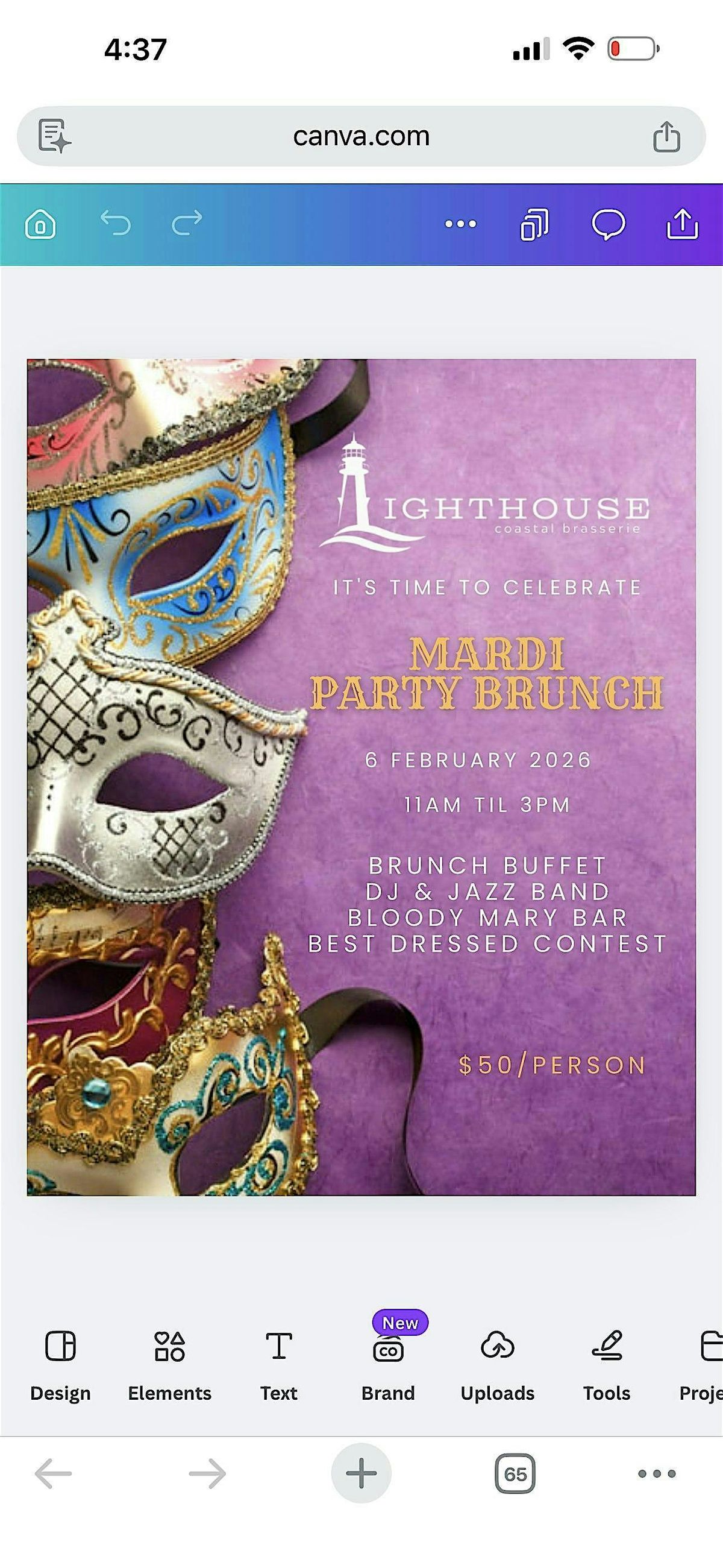 $50 gets you buffet brunch, a Bloody Mary bar, and a Mardi Gras costume contest