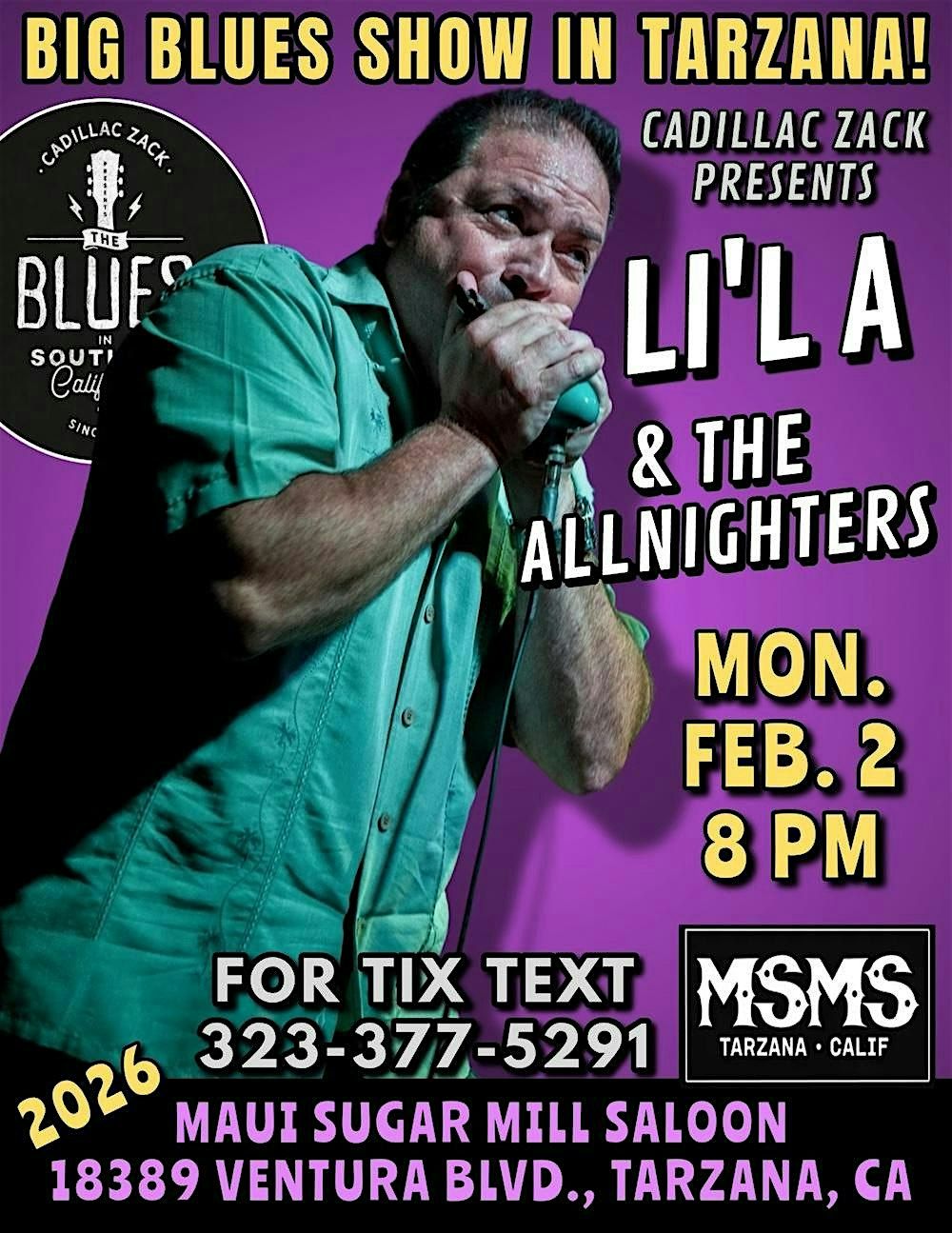 Blues Harmonica Great - LI'L A & THE ALL NIGHTERS - in Tarzana!About this Event