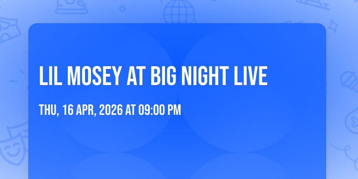 π Step into a world of wonder at Lil Mosey at Big Night Live, where extraordinary moments await! ποΈ Located at Big Night Live in dynamic Boston, MA, this event will become the talk of the town. π Join us on April 16th, 2026 at 09:00 PM for a celebration that defies the ordinary. β¨ This curated experience brings together the best of entertainment, culture, and community spirit. Every detail has been thoughtfully planned to ensure an unforgettable experience for all our guests. π― Take advantage of this opportunity to be part of something special. π Early registration is recommended as space is limited!