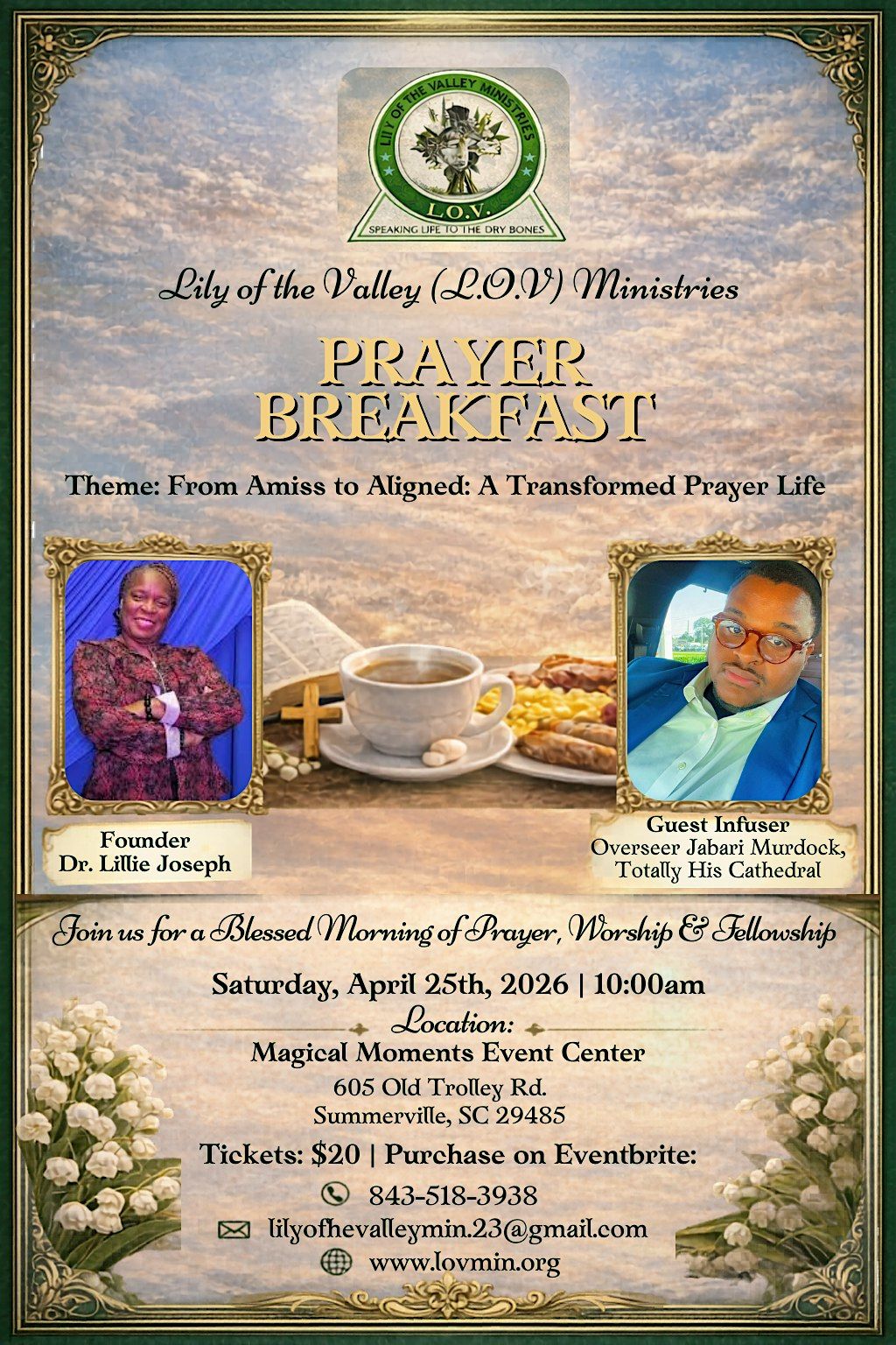 Start your morning in the presence of God at the Lily of the Valley (L.O.V.) Ministries Prayer Breakfast.