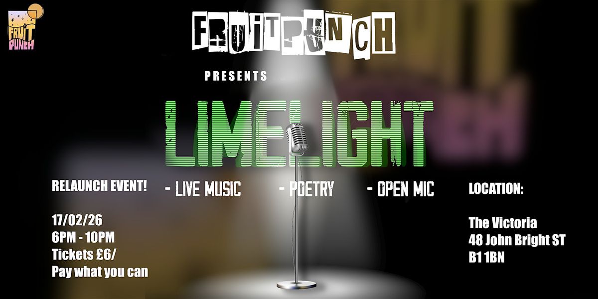 Step into the LIMELIGHT! A re-launch of our community-led live music and poetry event celebrating queer voices in Birmingham. The night will spotlight LGBTQIA+ artists, showcasing music to spoken word, performance poetry, and experimental storytelling.