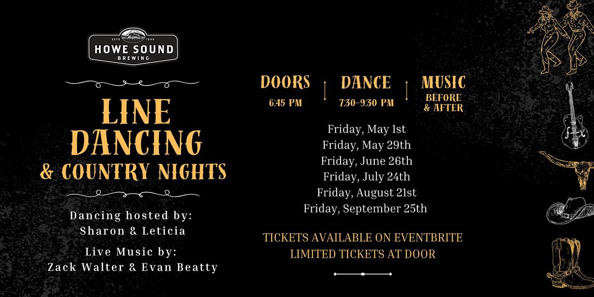 Saddle up! 🤠 We’re bringing back Line Dancing & Country Nights at Howe Sound Brewing, running monthly May–September! Learn with Sharon & Leticia, then enjoy live music from Zack Walter & Evan Beatty.