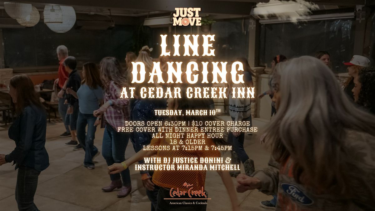Line Dancing returns to Cedar Creek on Tuesday March 10th starting at 6:30pm and there's no cover charge if you dine with us!About this Event
