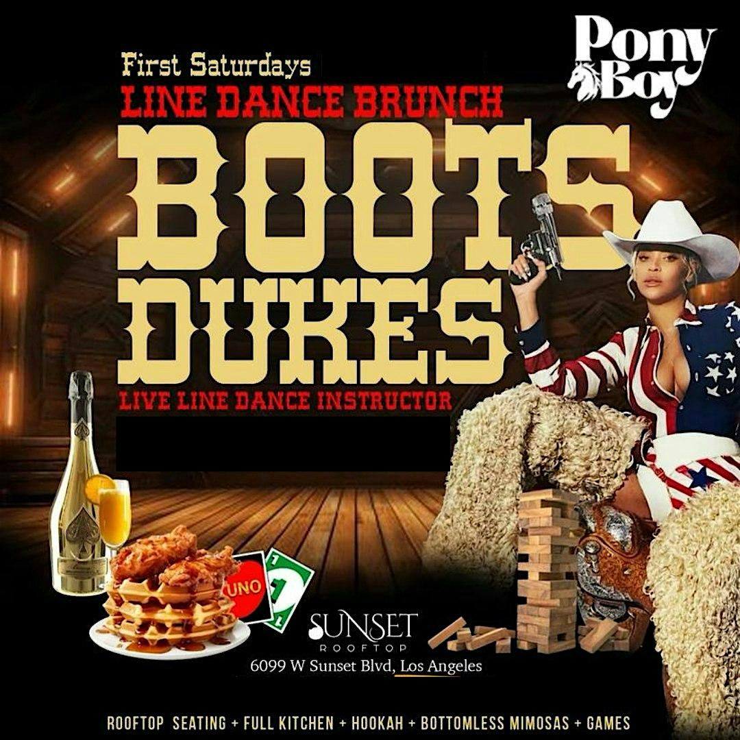 Line Dancing Brunch at Sunset RooftopKick off your month with some boot-stomping fun at our Line Dancing Brunch, happening every first Saturday of the month at Sunset Rooftop! Enjoy a live instructor, bottomless mimosas, delicious food, and smooth hookah in a lively atmosphere. VIP and private rooms are available for large parties and birthday specials. This is a 21+ event at 6099 West Sunset Blvd, Los Angeles, CA 90028 (2nd Floor).For group bookings, call 323-701-2110.