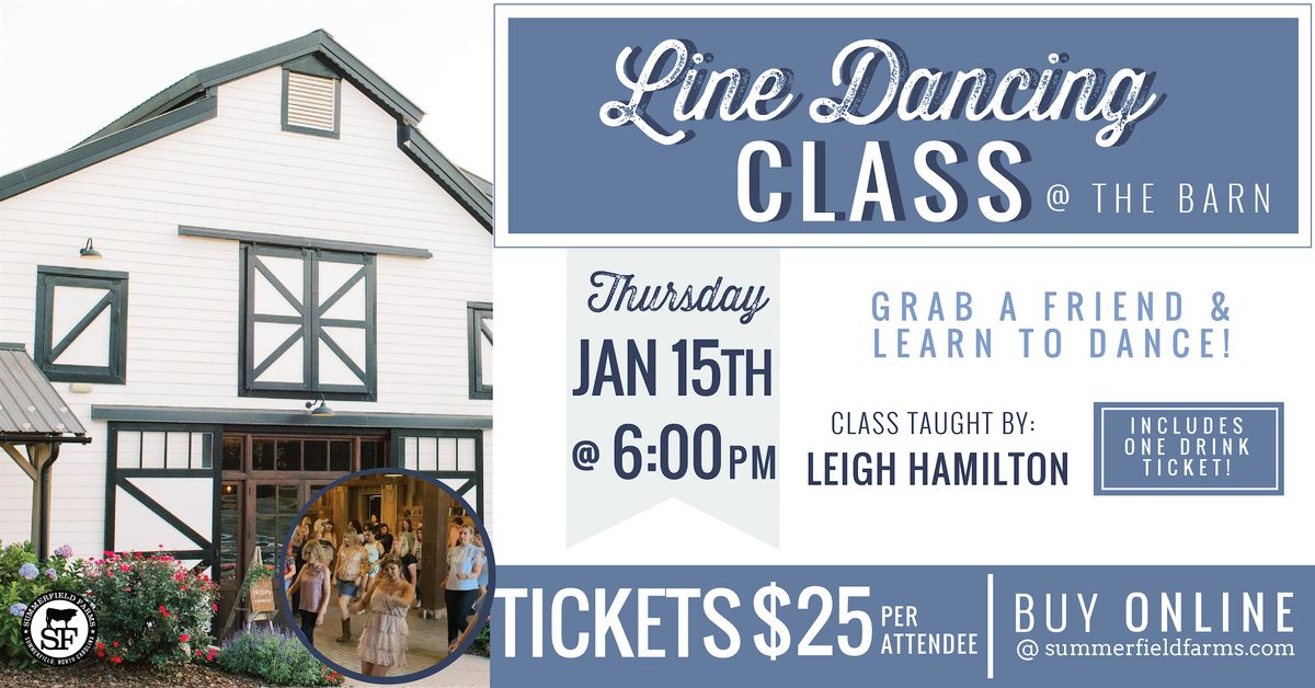 Join us and instructor Leigh Hamilton for a fun and energetic Line Dancing Class at Summerfield Farms! Grab your boots and get ready to dance the night away.