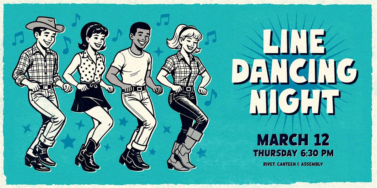 We're excited to bring back Line Dancing Night after such a great turnout at our last one! So many of you showed up ready to learn and dance that we knew we had to do it again. Join us at Rivet: Canteen & Assembly on Thursday, March 12th for another fun-filled evening. Whether you are brand new to dancing or already familiar with the steps, everyone is invited!