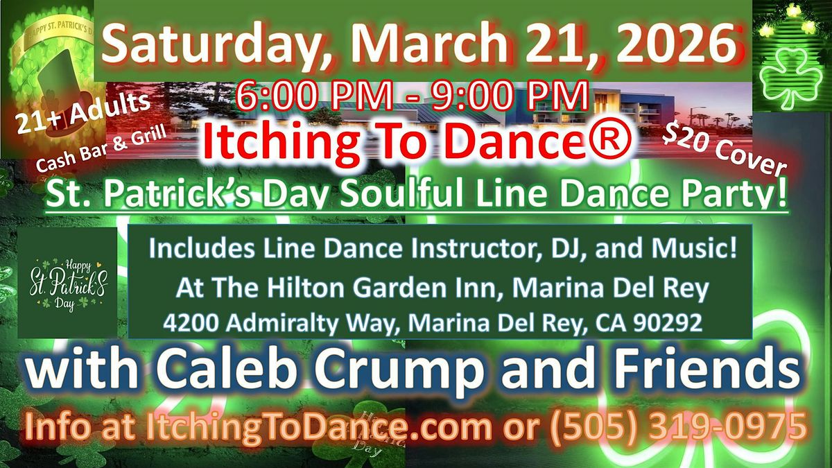 Join Itching To Dance® with Caleb Crump and Friends, at the Hilton Garden Inn, in Marina Del Rey for a fabulous St. Patrick's Day Dance Party. There will be Open Floor Dancing, Line Dancing, Music DJ'ing, and Fun as we dance the night away.