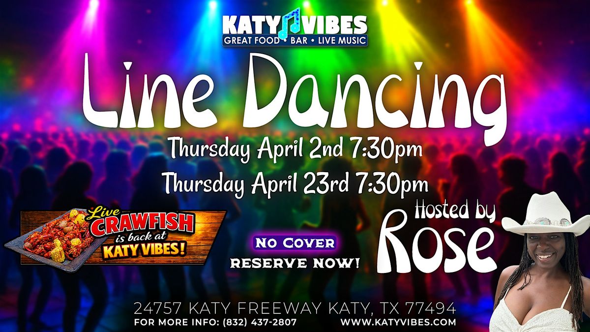 🤠Line Dancing with Rose returns to Katy Vibes on Thursday, April 2 and Thursday, April 23 at 7:30 PM. 💃