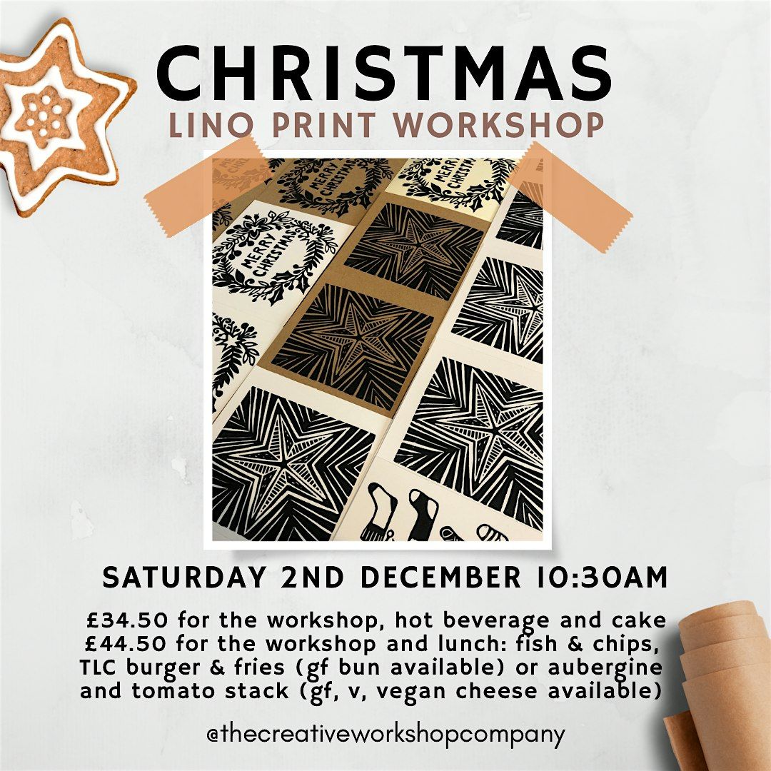 Lino Print Christmas Card Workshop with a hot beverage and cake or lunch