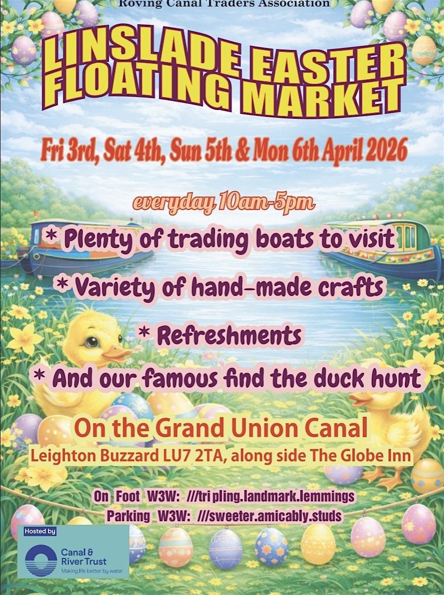 Join us for the Linslade Easter Floating Market — a fun in-person event where you can explore unique stalls floating on the water! It’s a perfect way to celebrate Easter with family and friends, enjoy some fresh air, and discover tons of cool finds. Don’t miss out on this vibrant community vibe and delicious treats waiting just for you!