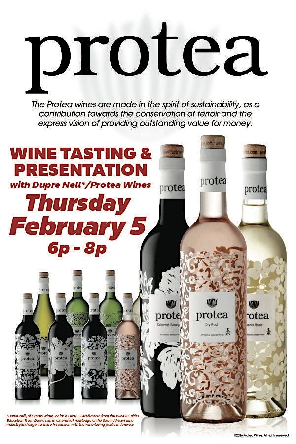 Welcome to Liquid Luxury - Protea Wine Presentation Tasting & Diamond Art event! Join us at Champions Corner on February 5, 2026 at 6:00 PM for an evening of indulgence.