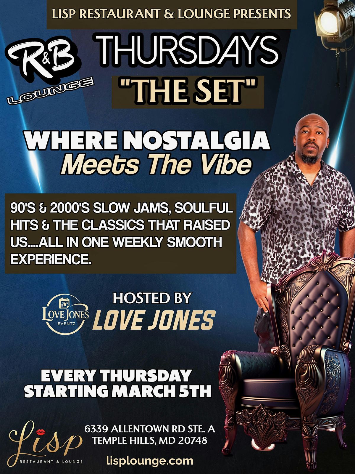 Join us in person for a chill night hosted by the one and only Love Jones. It's all about good vibes, smooth tunes, and great company. Whether you're an R&B fan or just looking to kick back and relax, this is the spot to be. Don't miss out on the laid-back atmosphere and soulful beats that Lisp Lounge always brings. See you there!