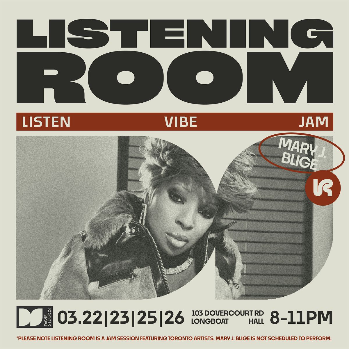 Musicians and music lovers alike are invited to step into this intimate space to listen, vibe and jam around the influential music of Mary J Blige. Each evening will be magical, inspired by these sounds that we love so much. Come prepare to jam!!