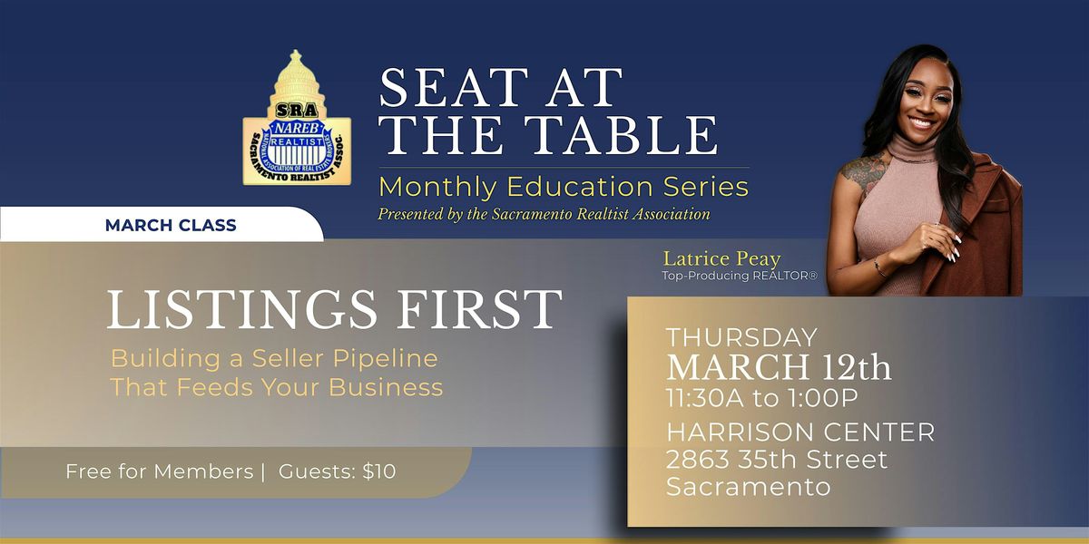 In this 30-minute Lunch & Learn, Latrice Peay will walk through a clear, repeatable seller pipeline—from lead to signed listing. This session is focused on structure, positioning, and practical systems you can apply immediately.