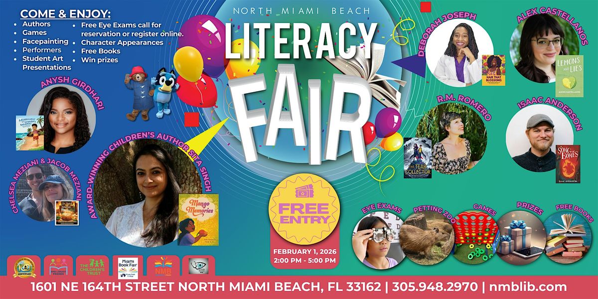 Free Literacy Fair at NMB Library! Meet authors, play games, grab free books & enjoy a petting zoo. Join us!