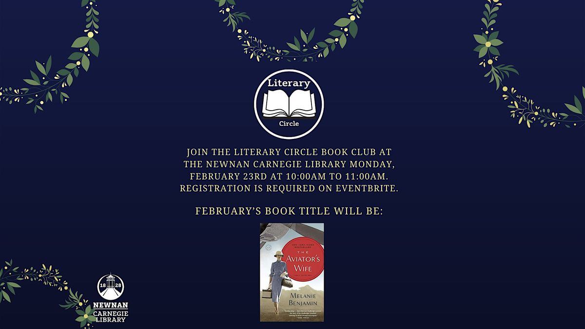 Join the Literary Circle Book Club at the Newnan Carnegie Library Monday, February 23rd from 10:00am to 11:00am. The February book title is: The Aviator's Wife by Melanie Benjamin.
