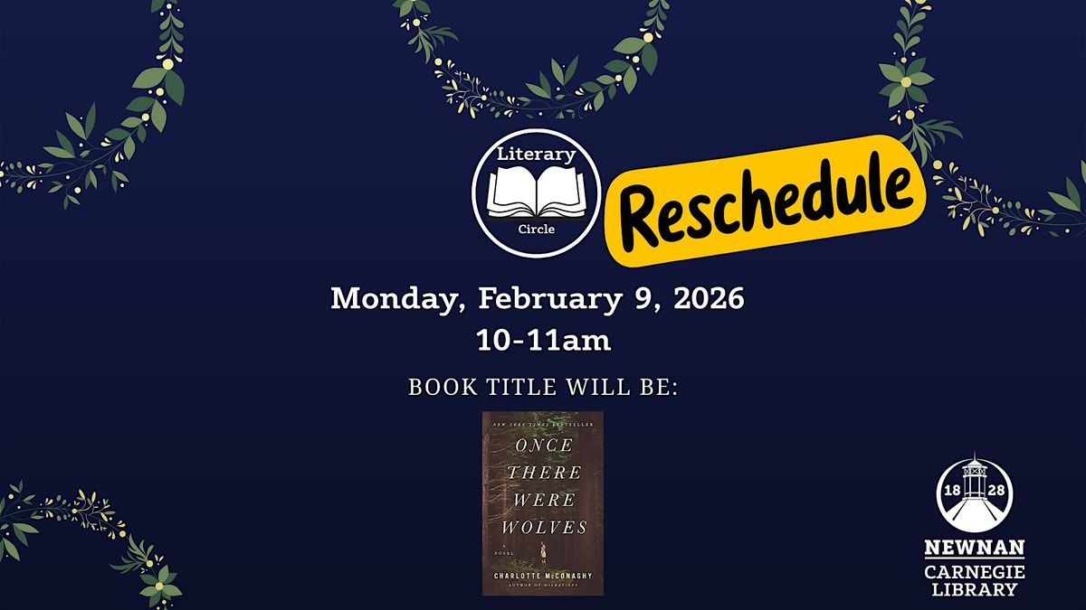 **RESCHEDULED: Join the Literary Circle Book Club at the Newnan Carnegie Library Monday, February 9th from 10:00am to 11:00am. The book title from January to be discussed is: Once There Were Wolves by Charlotte McConaghy.