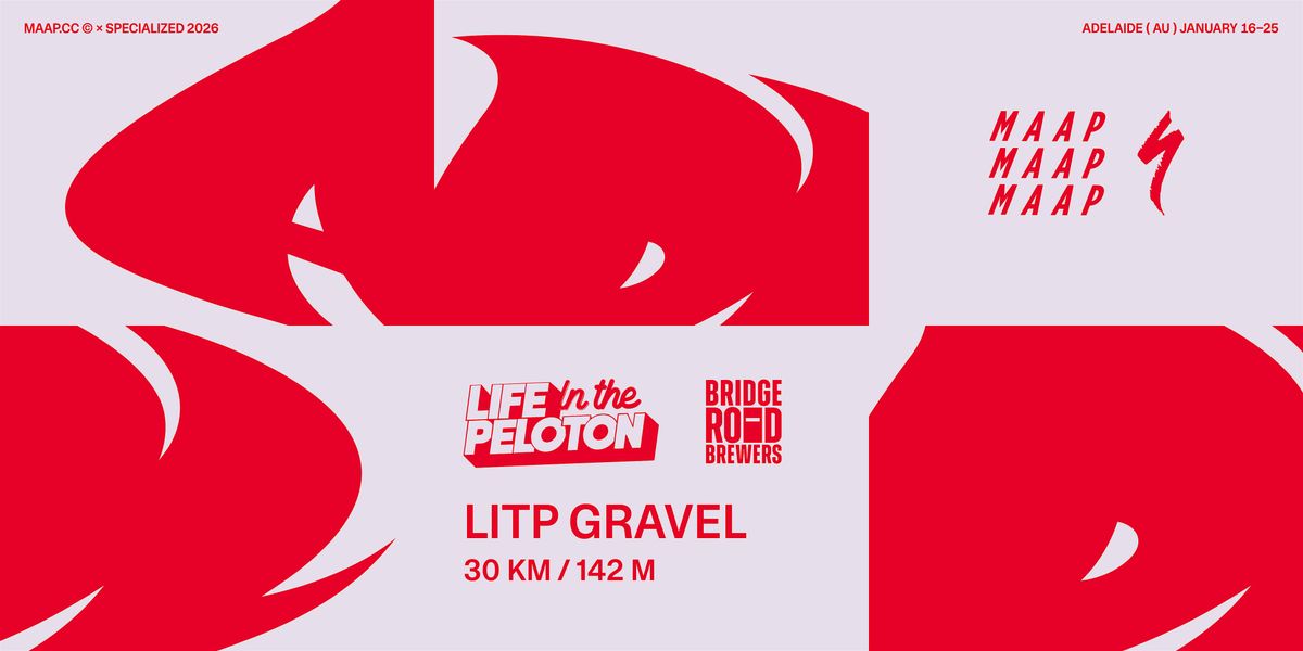 The Life In The Peloton Gravel Ride is back this year, with Mitch putting together another epic route taking in the best gravel the Adelaide hills has to offer. Ride hard, then roll back to the pop-up in time for a cold beer and the evening event.