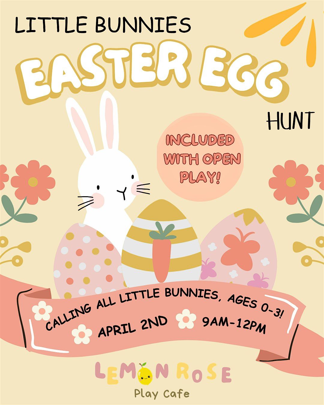 Join us at Lemon Rose Play Cafe for a special Little Bunnies Egg Hunt designed just for our tiniest guests!