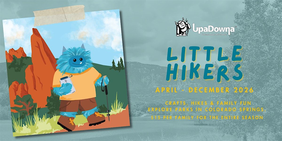 Event Details: Join UpaDowna on a short hike around a variety of locations at family-friendly parks and open spaces in Colorado Springs. We will go on a short hike/walk, followed by a craft. Hikes are typically stroller-friendly. Please no pets (e.g., dogs). All kids are required to have adult supervision throughout the entire event.