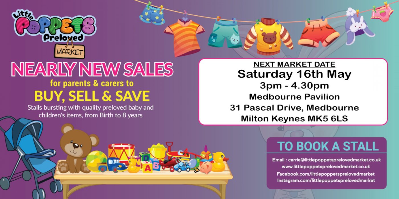 Little Poppets Preloved Market - Medbourne Pavilion, Saturday 14th May, 3pm - 4.30pm